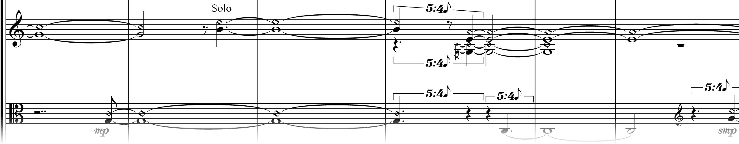 percussion – 2 players: I. tubular bells/vibraphone/crotales; II. 4 tam-tams (medium to very deep)/bass drum (very deep)harp
